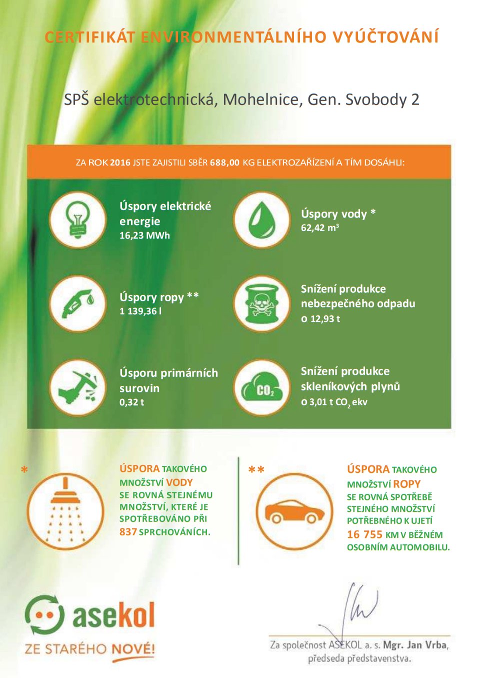 > Naše škola díky Recyklohraní přispěla k ochraně životního prostředí