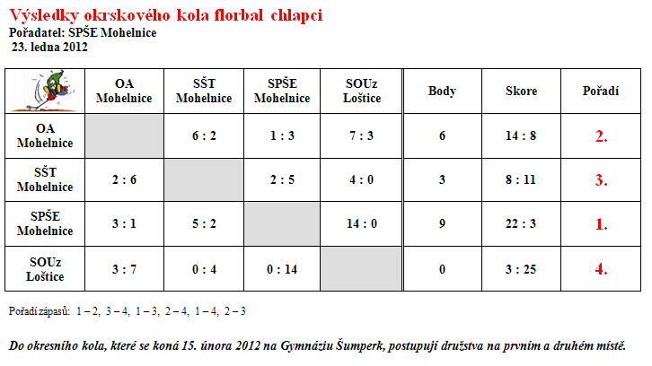 > Okrskové kolo ve florbale - chlapci